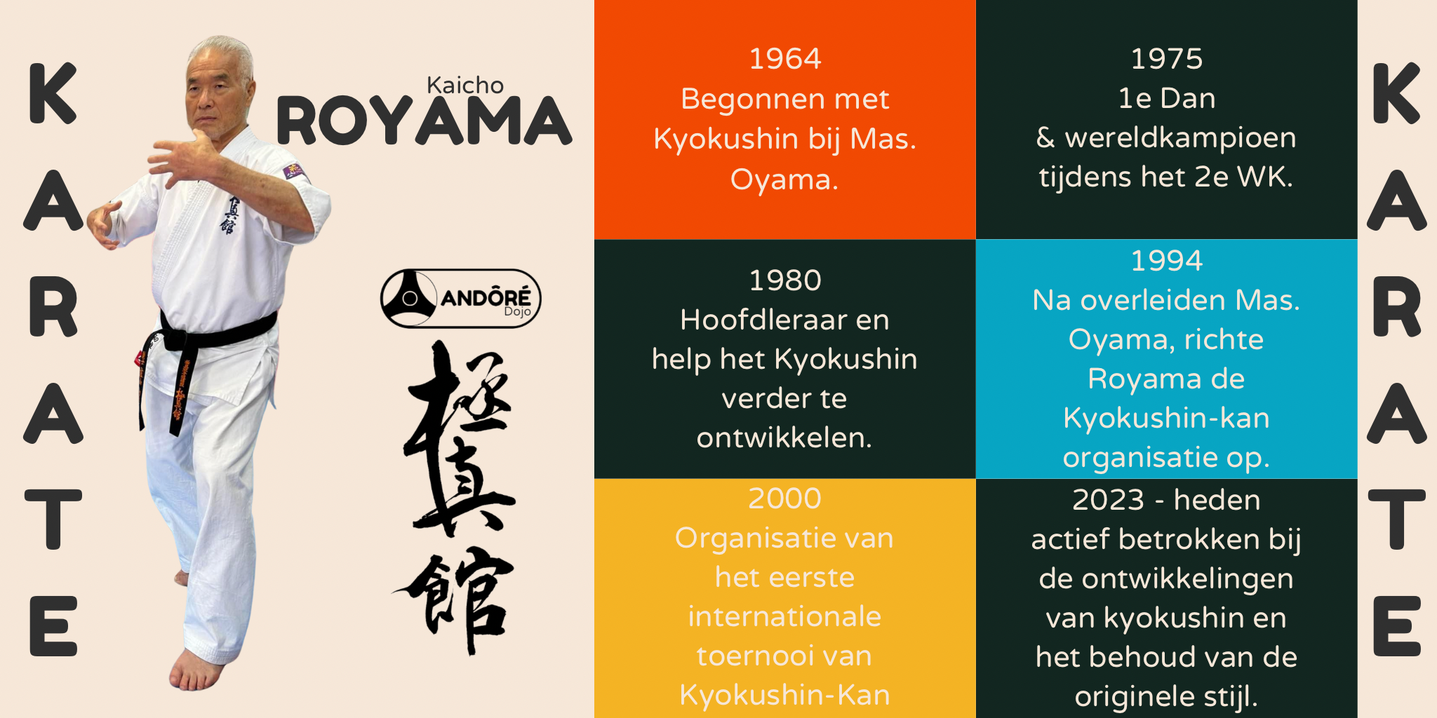 Kaicho Royama is een prominente figuur binnen de Kyokushin karate gemeenschap en de leider van de Kyokushin-kan organisatie. Hij begon zijn training onder de oprichter van Kyokushin, Masutatsu Oyama en ontwikkelde zich tot een hooggekwalificeerde karateka. Na de dood van Oyama in 1994, nam Royama de leiding over de organisatie en richte hij zich op het uitbreiden van de internationale invloed van Kyokushin karate.
